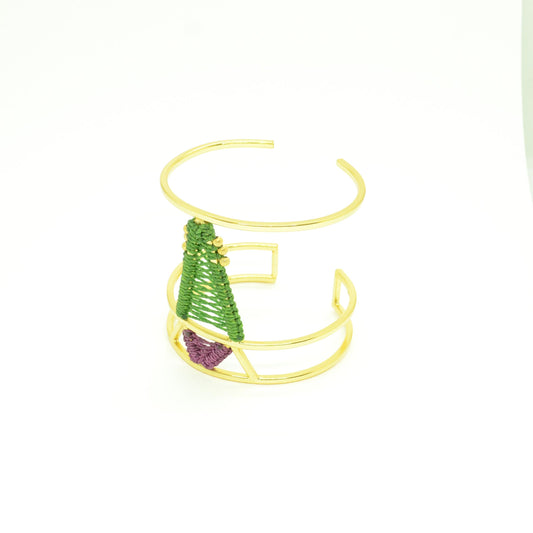 Está inspirada en los instrumentos tradicionales colombianos. Son joyas que conectan a una tradición que se pasa de generación en generación al igual que el tejido que la envuelve.